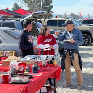 Sunday started off much like the day before, with an early tailgate. This time we spent it with the "Bang Bang Niner Gang" starting about three hours before kickoff between San Fran and New Orleans, right outside of Levi's. We enjoyed more libations and some Loco Moco and Lumpia! Mahalo Candi and Josie for all their work at both tailgates.