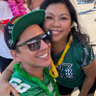 Waking up in our comfy LA home, we made another journey down to San Diego, this time to Snapdragon Stadium, where the tailgate was already bumping. With our Road Warrior Ohana coming in from Colorado, Texas, NorCal and further, we reunited for another amazing party in the parking lot. We even got a special performance by the UH Marching band! Items on the menu included spam musubi, kalua pig, bbq chicken, and more. But the winnahz might have been the lumpia, rolled by hand and deep fried right there in the Green Lot. So 'ono! Our Rainbow Wrap-Up podcast crew was also able to connect and fellowship with Sons of Montezuma, a brand for fans of SDSU that also includes a podcast. The 'Bows dropped a close game late in the fourth, but we had an awesome time in our sideline seats or for some of us, hanging at the Cutwater bar with our friends enjoying the birdseye view of the action. You can hear all about our experience on this episode of our show.